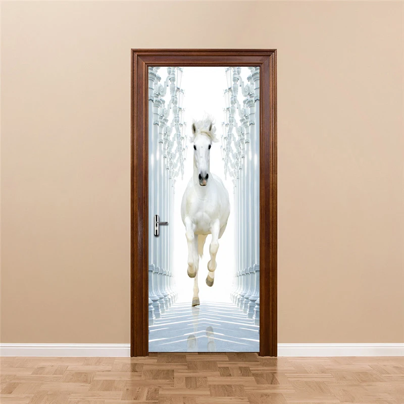Best Seller Roman Column White Horse 3D DIY Door Wall Stickers Home Decor Modern Study Room Bedroom Door Mural
